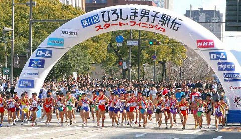 | この駅伝の話を聞いたのは、4月中旬、OB会の近松氏が拙宅を訪ね、5月5日高専のグラウンドで開催するので、是非参加して欲しいと、案内をいただいた。始めはピンとこなかったが、次第にその企画の素晴らしさに、行くことをすぐ決めた。 4月29日、織田記念国際陸上に出かけた。中国新聞の小笠原運動部長から「記事を見てくれましたか?、先生も参加されるそうですネ!」とその日の朝刊を見せられた。本部席で暫くその話、谷岡・前の両氏も顔を揃え、いろいろ説明をいただいた。