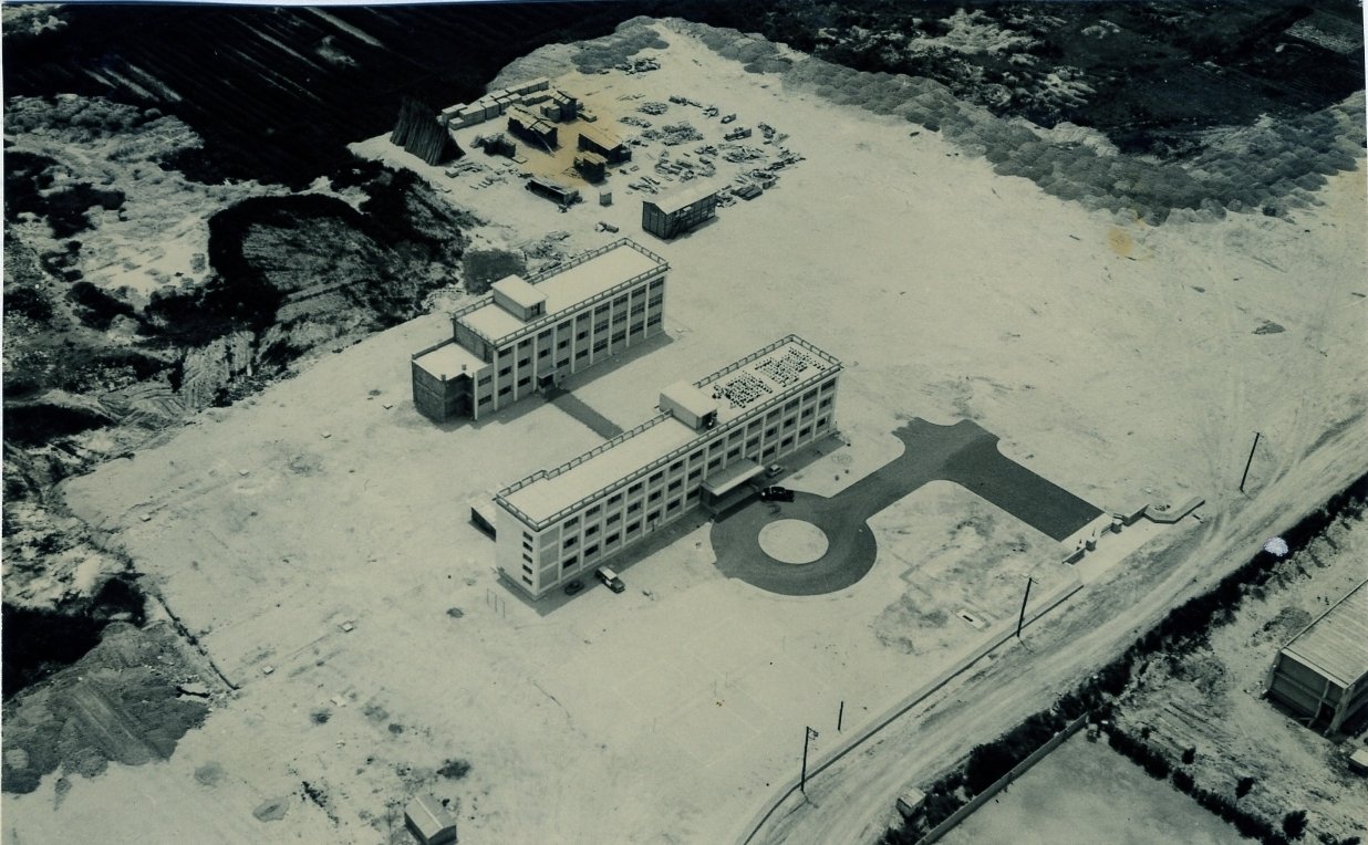 左:昭和39年、設立当時の母校全景